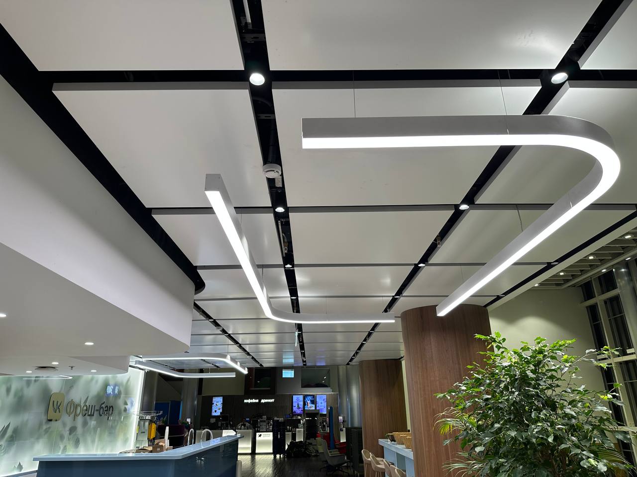 Наше производство завершило новый проект по изготовлению металлических потолочных панелей RUFER Hook для объекта со сложной архитектурой. Проект реализован для главного офиса ВКонтакте в Москве, где к качеству, точности и внешнему виду предъявляются повышенные требования.