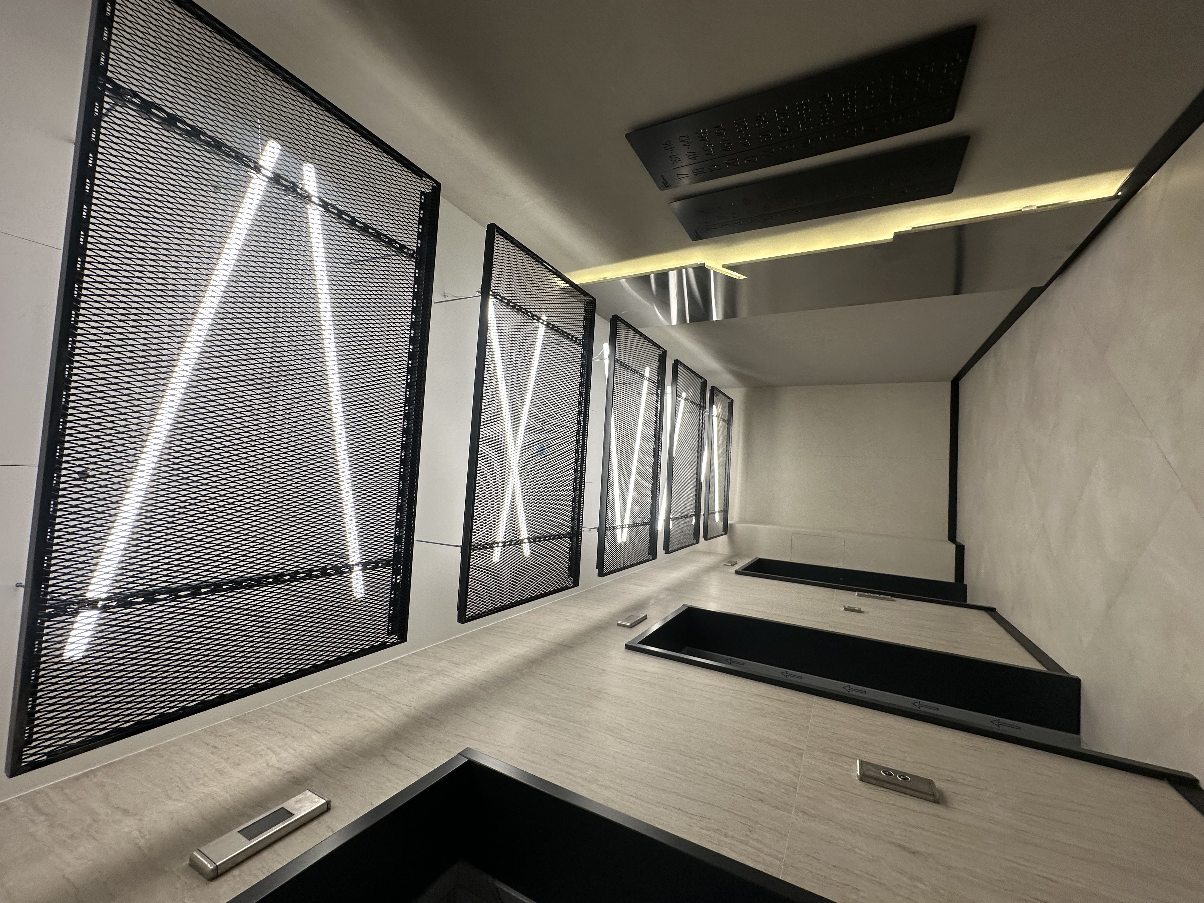 Общий объем составил более 5500 м² металлических потолков, что позволило реализовать комплексные решения для различных зон объекта.