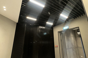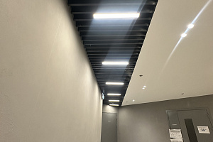 Использование металлических потолочных панелей в ЖК «AIST RESIDENCE» позволило создать функциональные и эстетичные пространства в зонах общего пользования. Такие решения активно применяются в современных жилых и коммерческих объектах благодаря своим эксплуатационным характеристикам.
